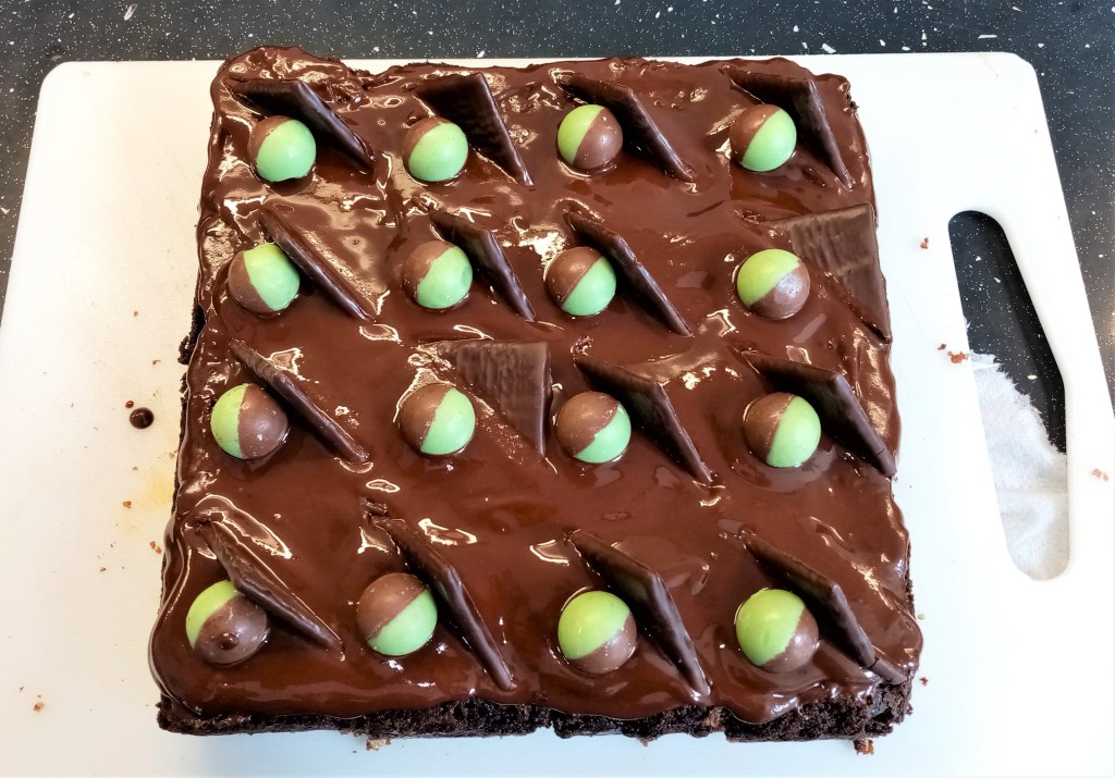 Time: 15 – 20 mins for the base. 50 – 60 mins for the brownie + cooling. 20 mins for the decorating option shown below (These are all approximate timings.)