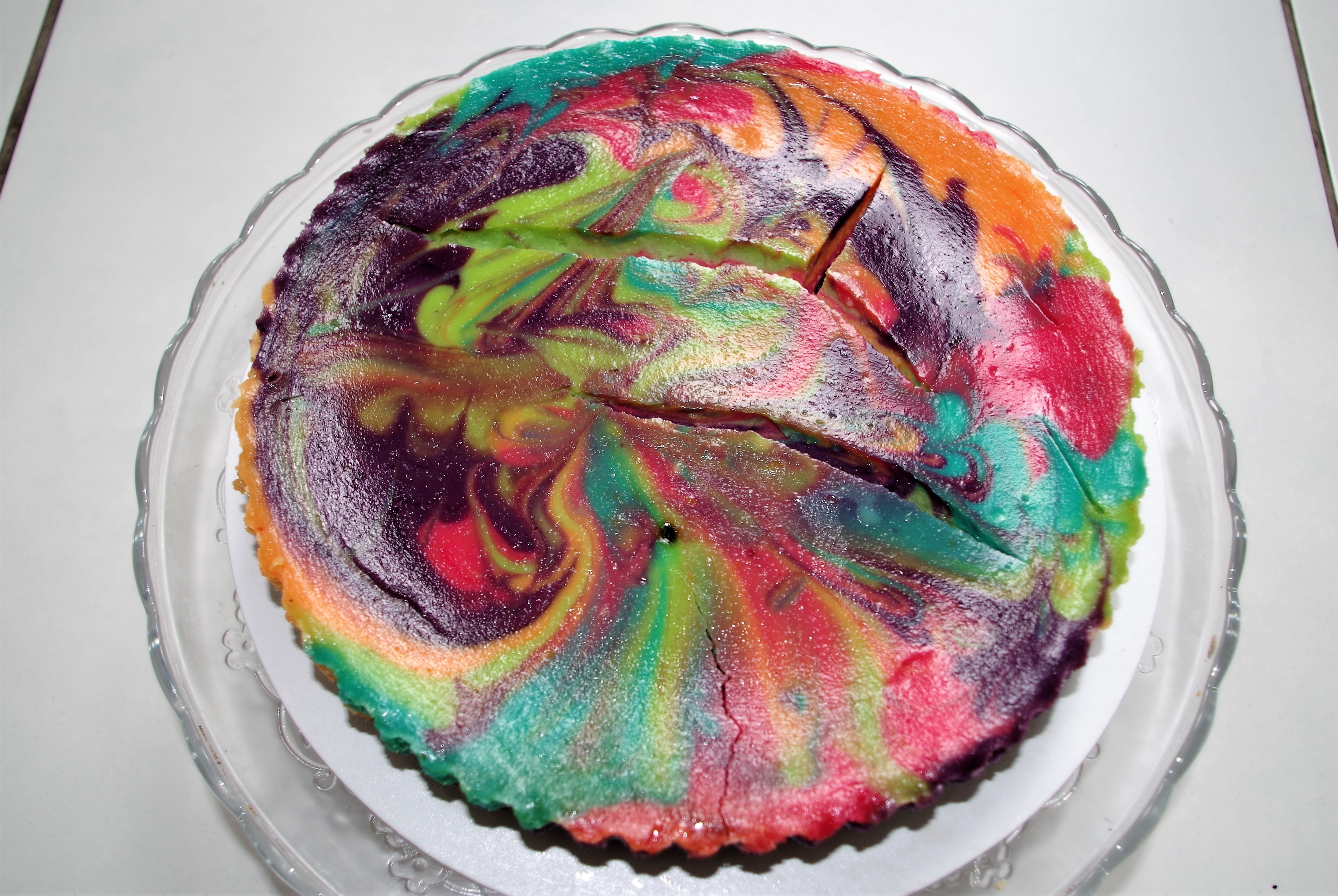 This is a colourful, fun cake, but it’s also seriously tasty and has a lovely light texture – not as dense as some baked cheesecakes. In short: fun to make, great to share and eat.