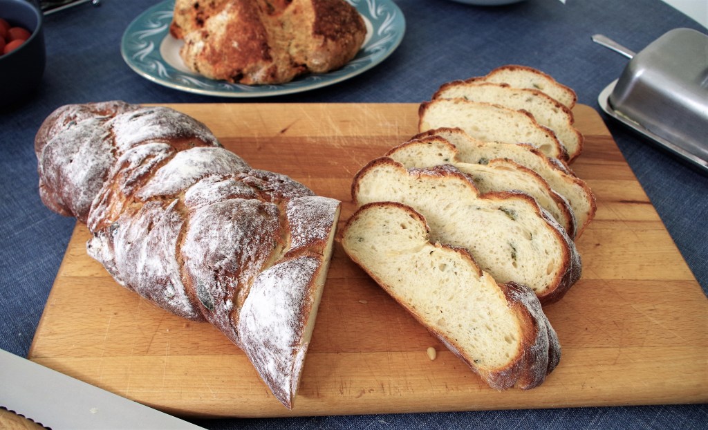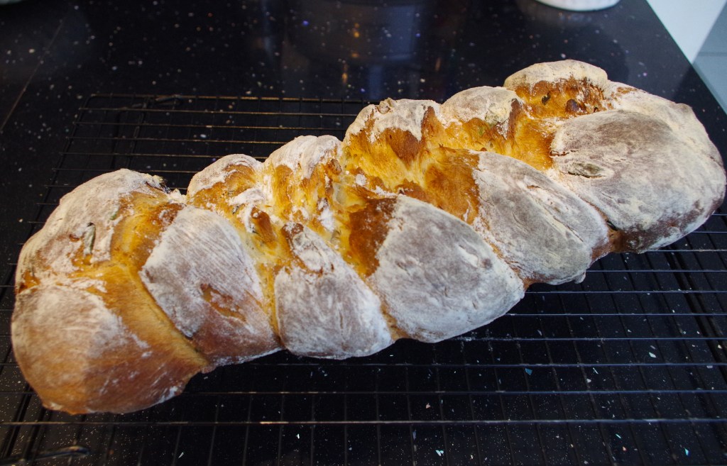 July was a quieter month, mainly because it’s mid-season for DofE expeditions and I either organise them or assess them for various schools and organisations. This means I get to walk around the Peak District (or other equally great areas), meet excellent youngsters and actually get paid for it. OK, back to baking. I made a Plaited Ricotta Loaf, the first of several. As it’s an Italian bread I’ll give its full title: Treccia con Ricotta e Salvia. (Salvia is Italian for sage. However when I texted some friends to tell them I’d made it for them, I hadn’t disabled the autocorrect function on my phone. Unsurprisingly they didn’t really fancy a loaf made with Ricotta and Saliva.)