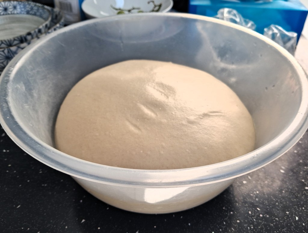 1Y – As above, but without the starter and with the yeast. (Keep the yeast away from the salt before mixing.) Leave in the covered bowl for 1 – 2 hours, until risen and doubled in volume.