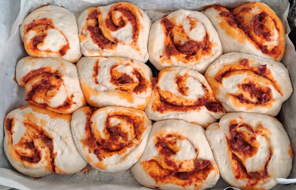 NB – A word of warning – handling nduja and chorizo and also the finished buns, will stain your fingers a lovely bright orangey-red.