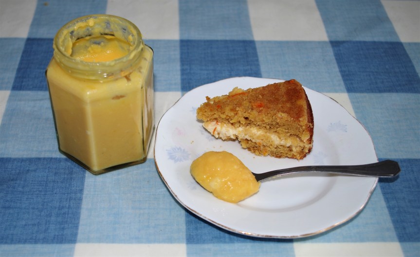 N.B. I couldn’t find any orange curd in my local shop, which turned out to be a good thing as I had to make my own. I’d recommend doing this. If orange curd is impossible to buy or make then you could just make a “Lemon Curd and Almond Cake“