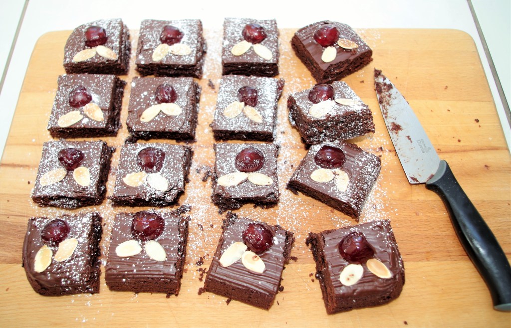 6. Bake for 55 – 65 minutes until golden brown and a skewer inserted into the centre comes out clean. Set aside to cool a little. Brush with warm apricot jam slightly diluted. Leave in the tin until fully cool and set.