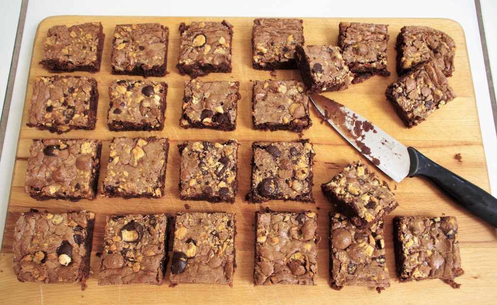 Need: A 20cm/8” square tin, with sides at least 5cm deep, mixing bowls, saucepan and a 350g/12oz jar of stem ginger in syrup