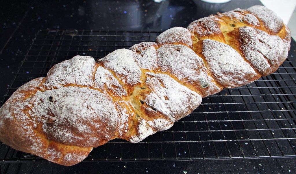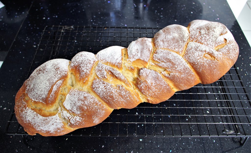 7. Sprinkle flour liberally over the plaited dough then slide or place it on the baking stone. Bake it for around 35 minutes. Cool on a wire rack.