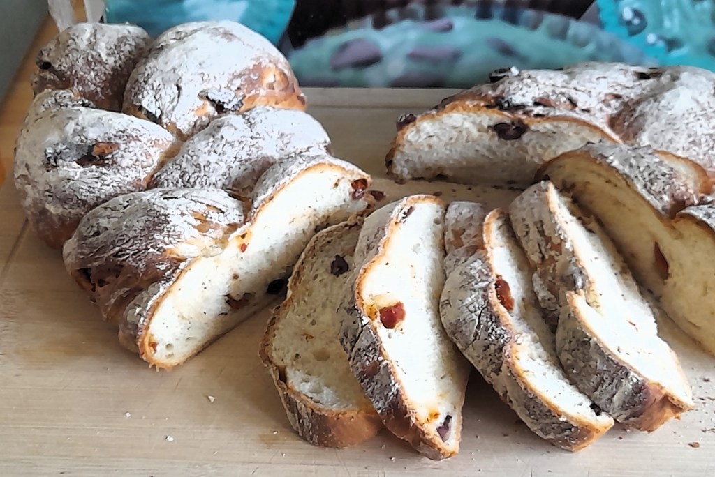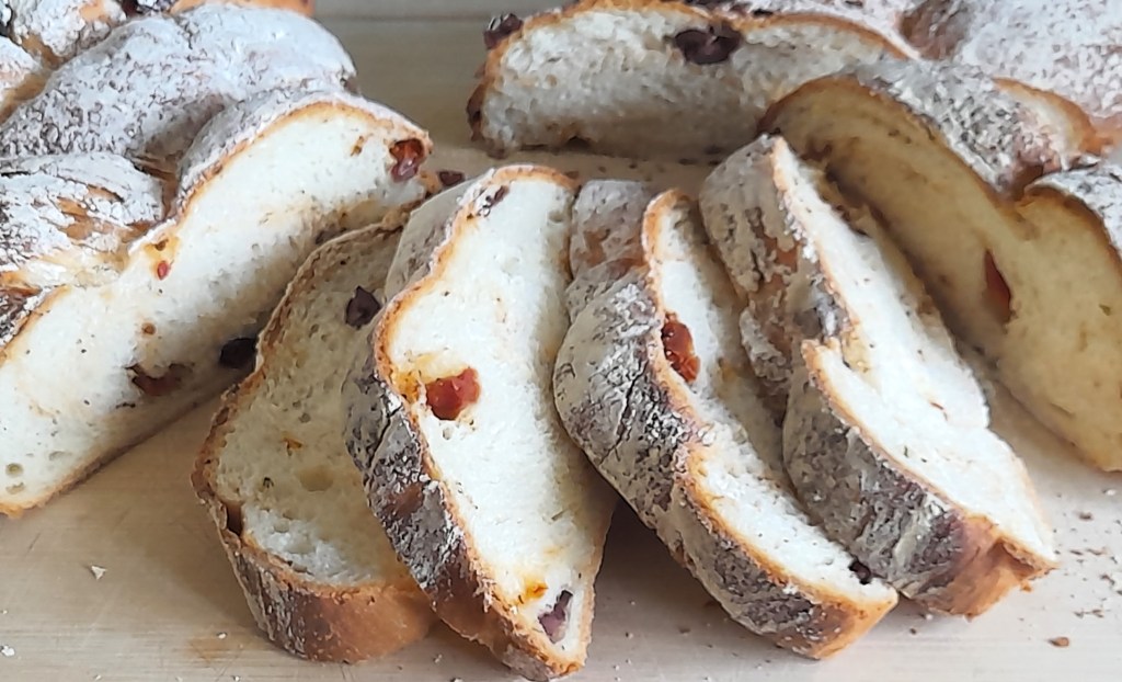 Treccia con Ricotta e pomodori essiccati al sole (Plaited loaf with Ricotta and Sun dried tomatoes)