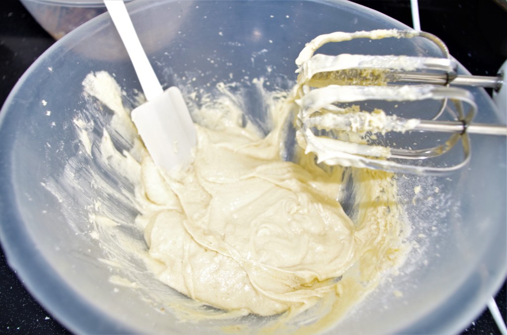 5. Stir the dry ingredients into the wet mixture, alternating with buttermilk until everything is smooth.