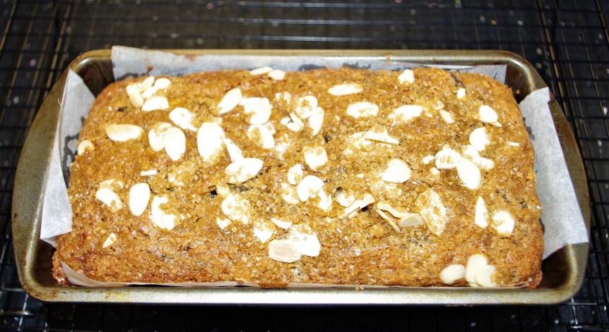 *For a gluten free version, simply replace the flour with a GF alternative. (Supermarket own brand GF flours are OK; likewise “Free-from” flours from such companies as Doves Farm work well.) If you have xanthan gum powder then also add in half a teaspoon, but you should still get an acceptable loaf cake without it.