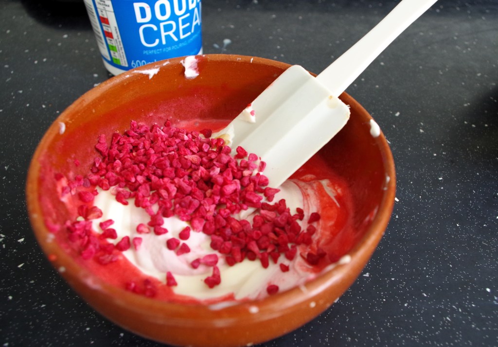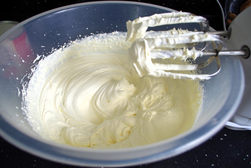 1. In a large bowl whisk the double cream to soft peak stage