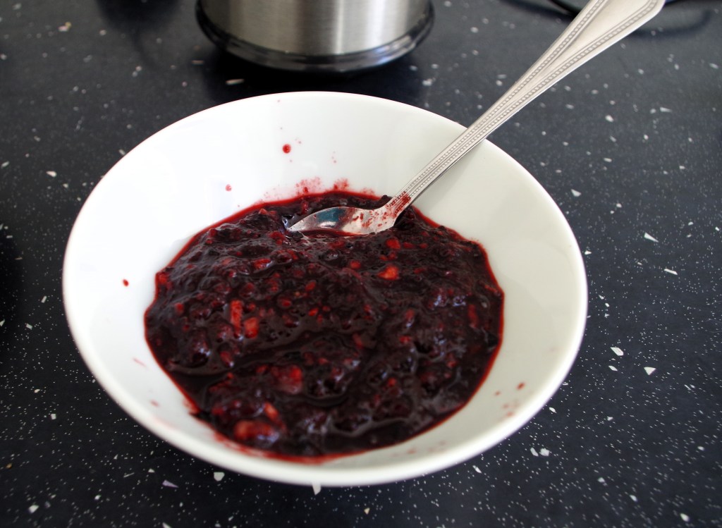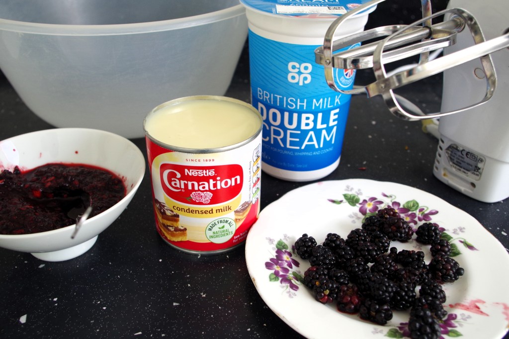 Since posting the original recipe I’ve been out in my local area blackberry picking, so had to make some blackberry ice cream. Once again, it’s really simple: blitz about 50g – 75g of blackberries and stir gently into the ice cream. Don’t stir a lot, otherwise you’ll loose the ripple effect. Then add in the same amount of whole blackberries and have another gently stir.