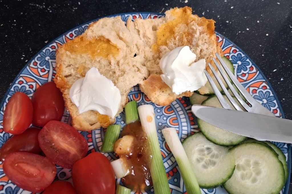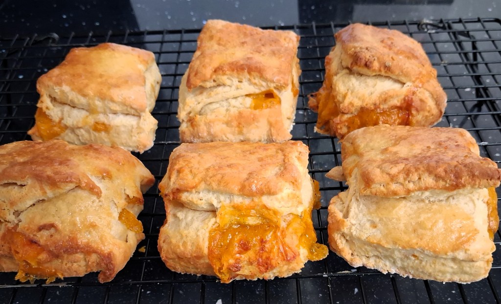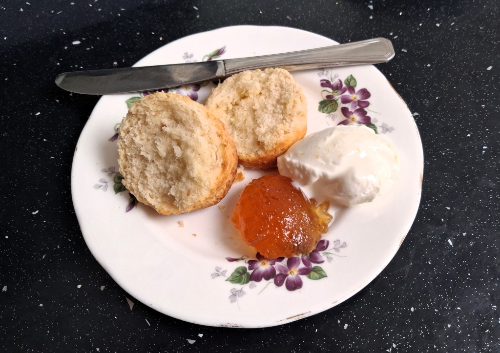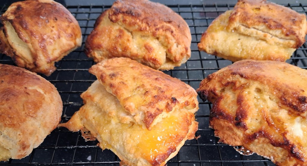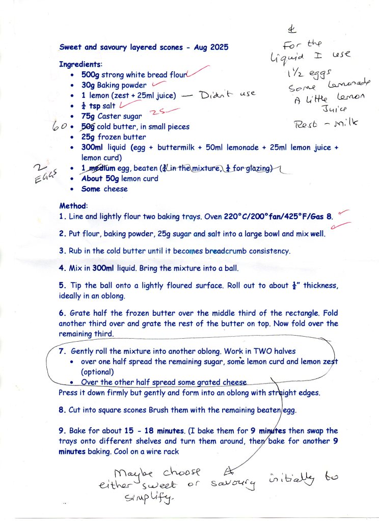 The scones shown here are something of an ongoing experiment, but don’t let that put you off. They are super already, otherwise I wouldn’t be telling you about them. Actually, I’m not sure that they should be called scones, hence the title. They’re a delicious cross between scones and puff pastry and very similar to American “biscuits”. Believe me, it works. But this is an open ended recipe, so have a go, add your own “tweeks” and flavours, enjoy the results and let me know!