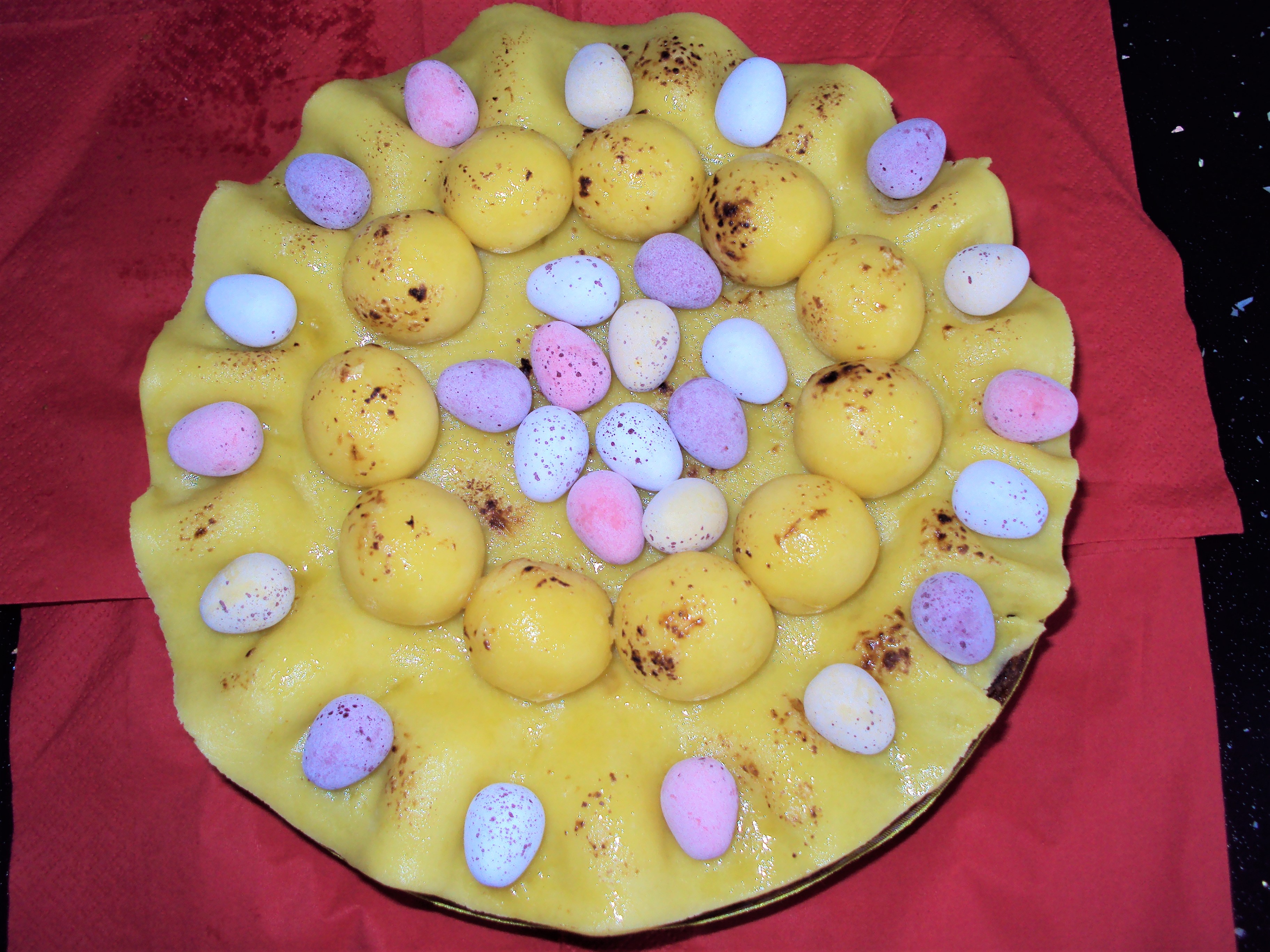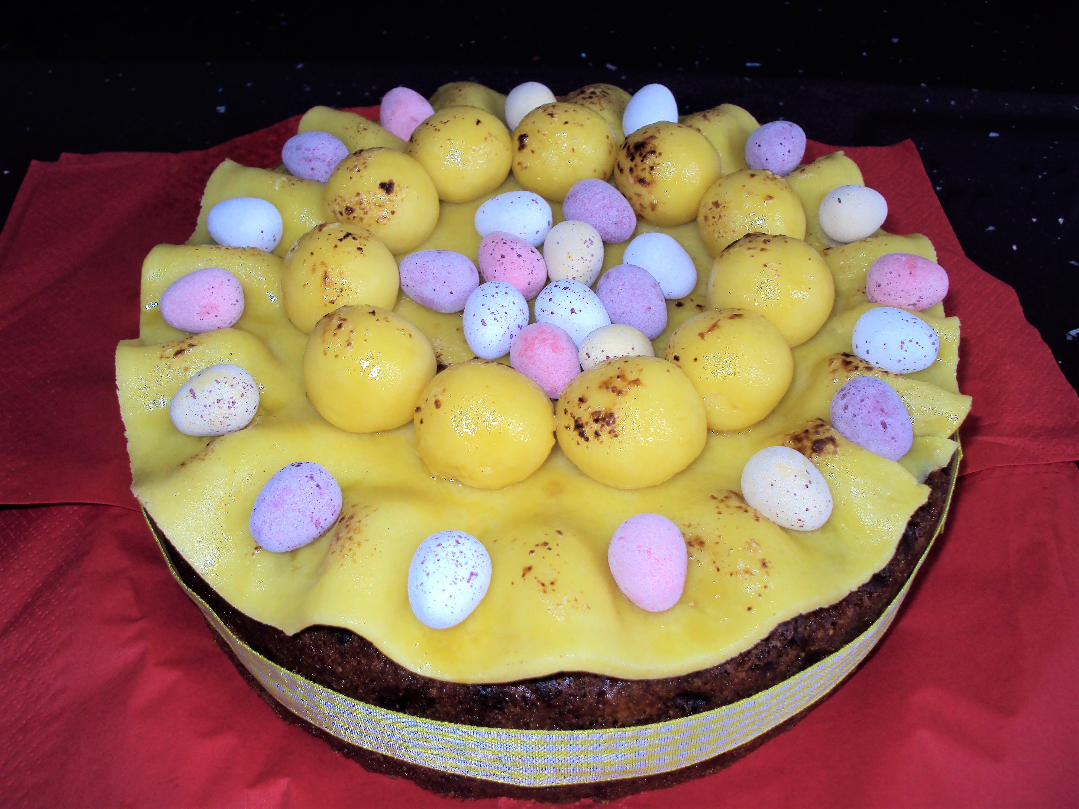 Here’s a lovely rich cake for Easter. If you love marzipan then this is for you. The 11 marzipan balls that decorate the top represent Jesus’s 11 remaining disciples after Judas died.