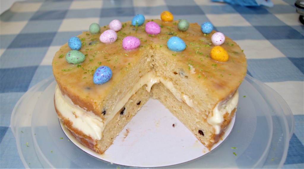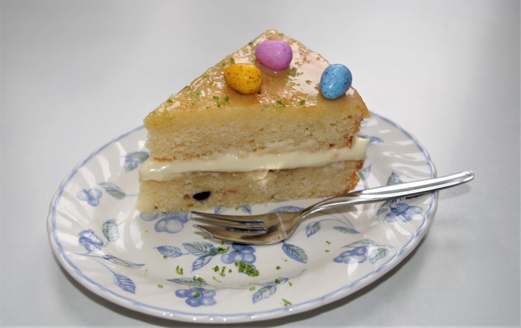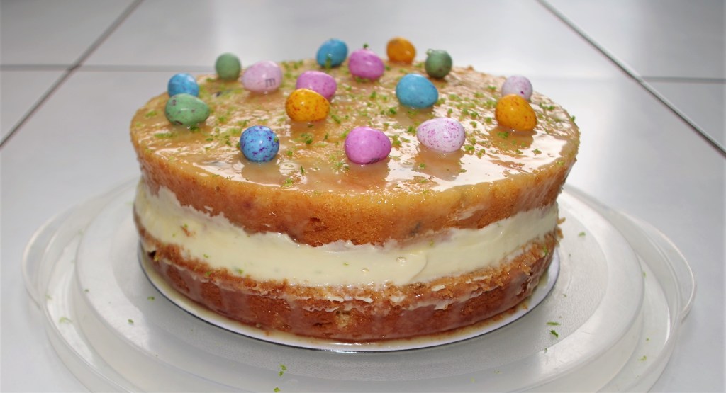 Many cakes can be “Easterised” (what a linguistic liberty) by simply adding lots of mini-easter eggs and – as you’ll see in a minute – I make no apology for doing just that. My White Chocolate Lemon and Lime Cake is a good example.