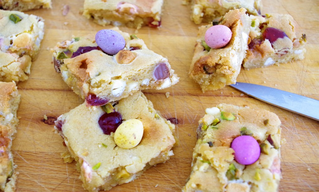 Two quick and easy bakes that also make good use of mini chocolate eggs are my Easter Blondies and Easter Flapjack. These are easy to “bag up” as gifts too.