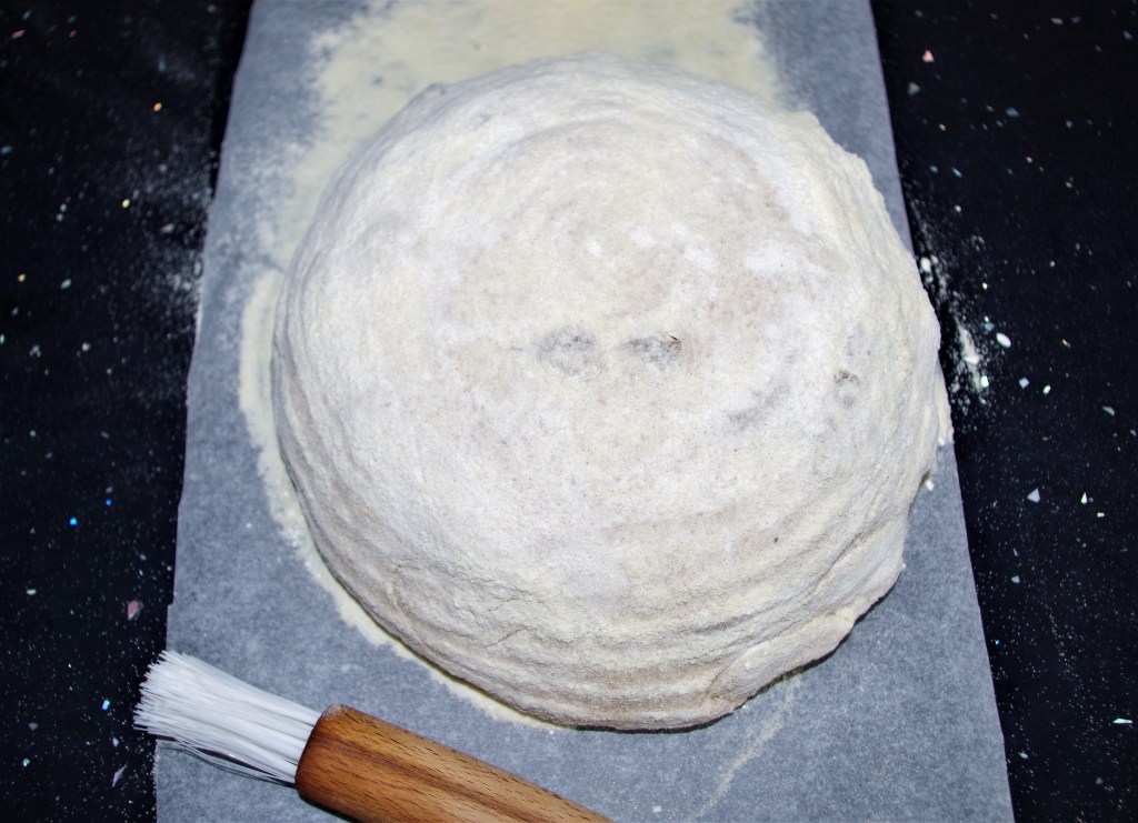 8. Put the ball of dough into a well floured banneton*. Cover and leave at room temperature until risen. (*I’m still experimenting with ways to avoid the dough sticking in my banneton. I must admit, I’ve not quite perfected this yet. Currently I’m using fine semolina, which may be the answer.)