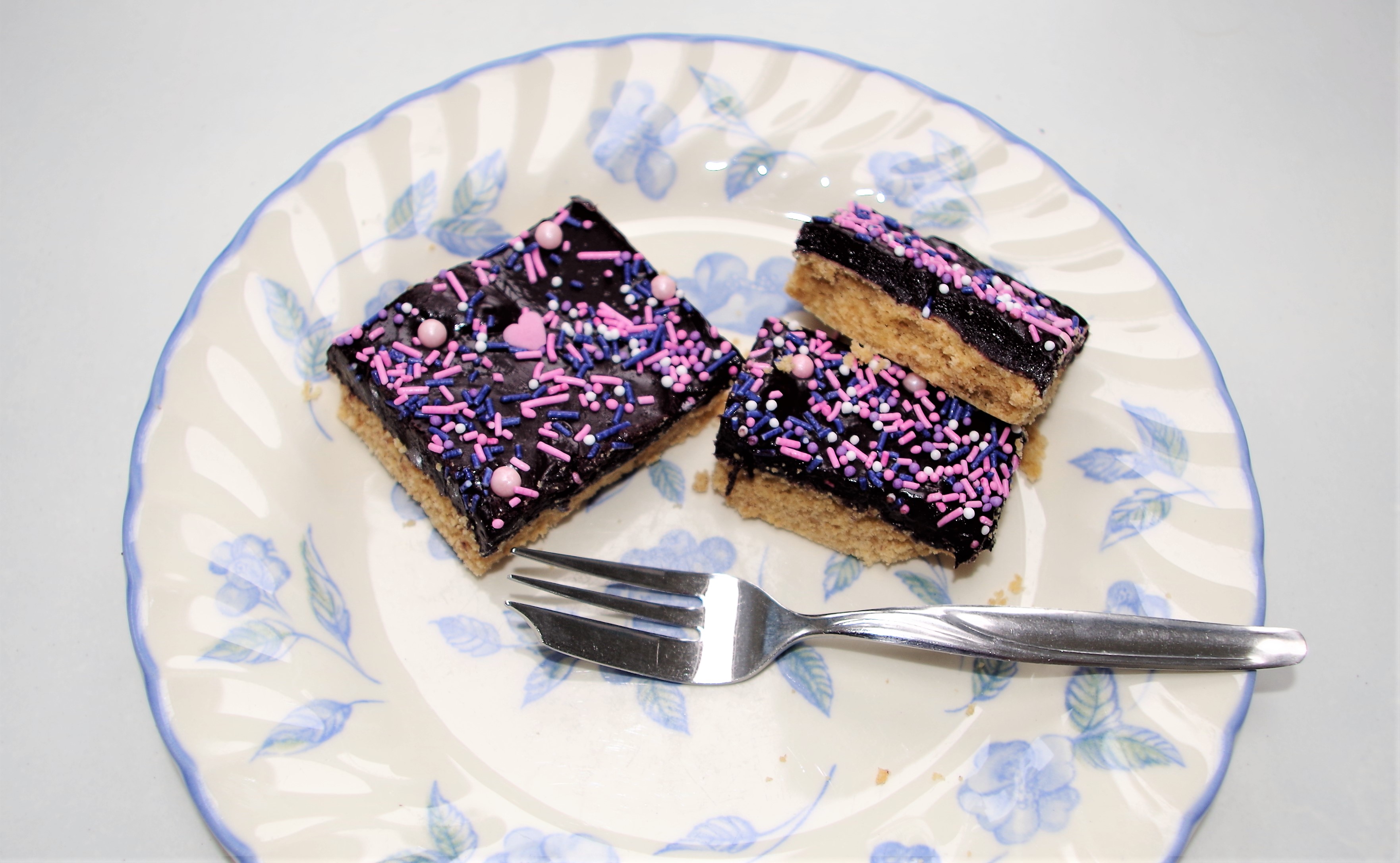 Finally, a word about fudge colour. The above photos show a very dark fudge, which suited the light sprinkles. However, the dark colour was a bit of an accident. I attempted to colour the fudge using “Grape Violet” food colouring. I also used Dulce de Leche rather than condensed milk. So, other versions could be much lighter – and equally tasty of course.