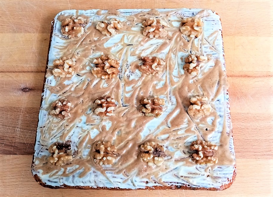 ** I used about 30ml of syrup in the cake mixture, but a little more would probably be OK. I didn’t have much left in the jar, so I brushed the remainder over the cake before it went in the oven. (That’s an option, or brush some on when the cake comes out of the oven, maybe.)