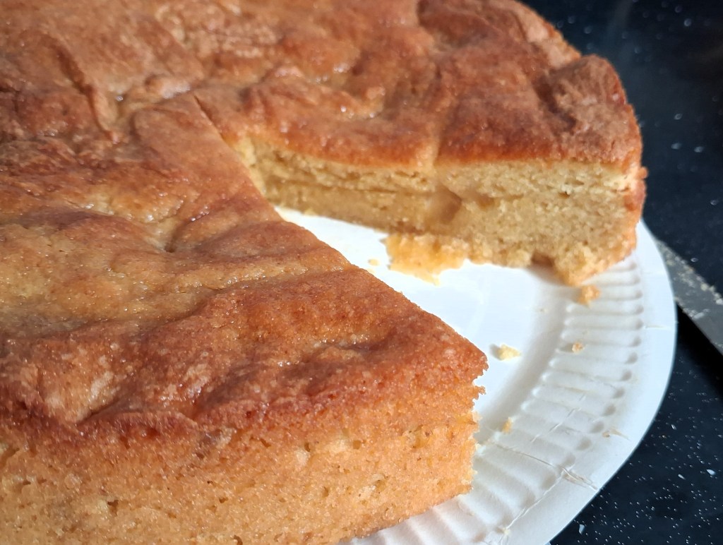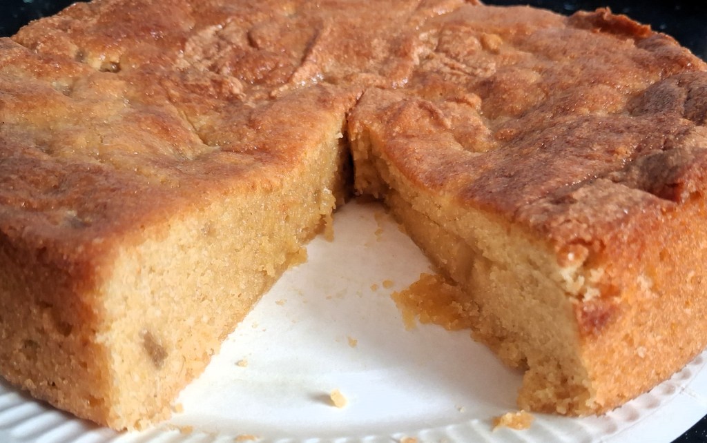 3. Spoon the batter into the cake tin, level it and bake for 42-50 minutes, or until golden and starting to shrink away from the sides.