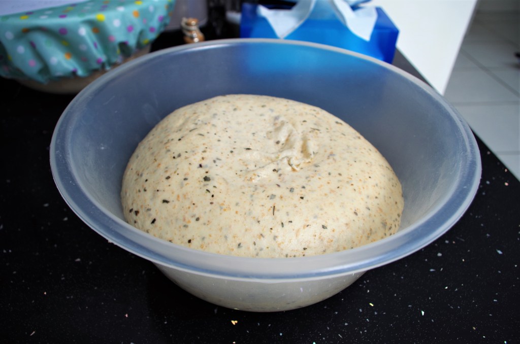 2. Knead for 7 – 10 minutes in a stand mixer (at least 12 – 15 by hand). Place the dough into an oiled bowl, gently pull the edges over into the middle a few times, turning the bowl as you do so. Cover & leave to rise until doubled in size.