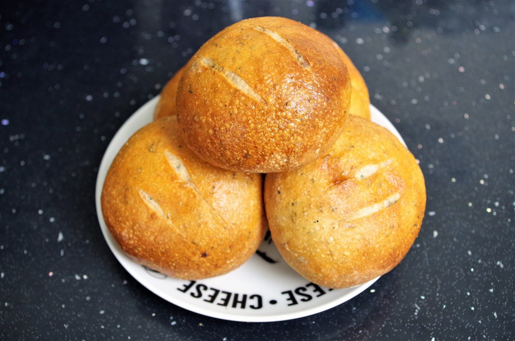 Time: Prep: 30 minutes. Hands on: 15 minutes. First prove: 60 – 90 minutes depending on conditions. Second hands on: 20 minutes. Second prove: 30 – 45 minutes. Baking (at last!): less than 15 minutes.
