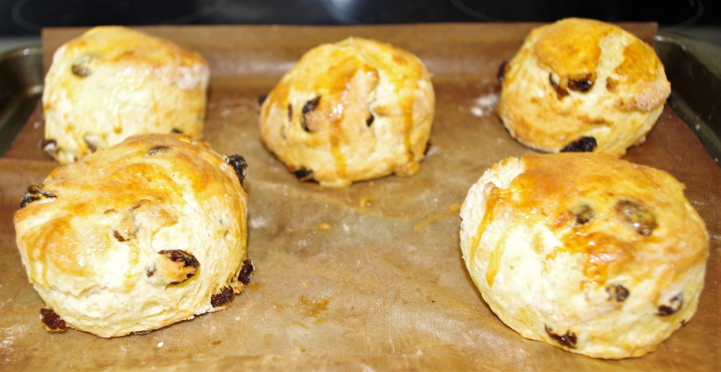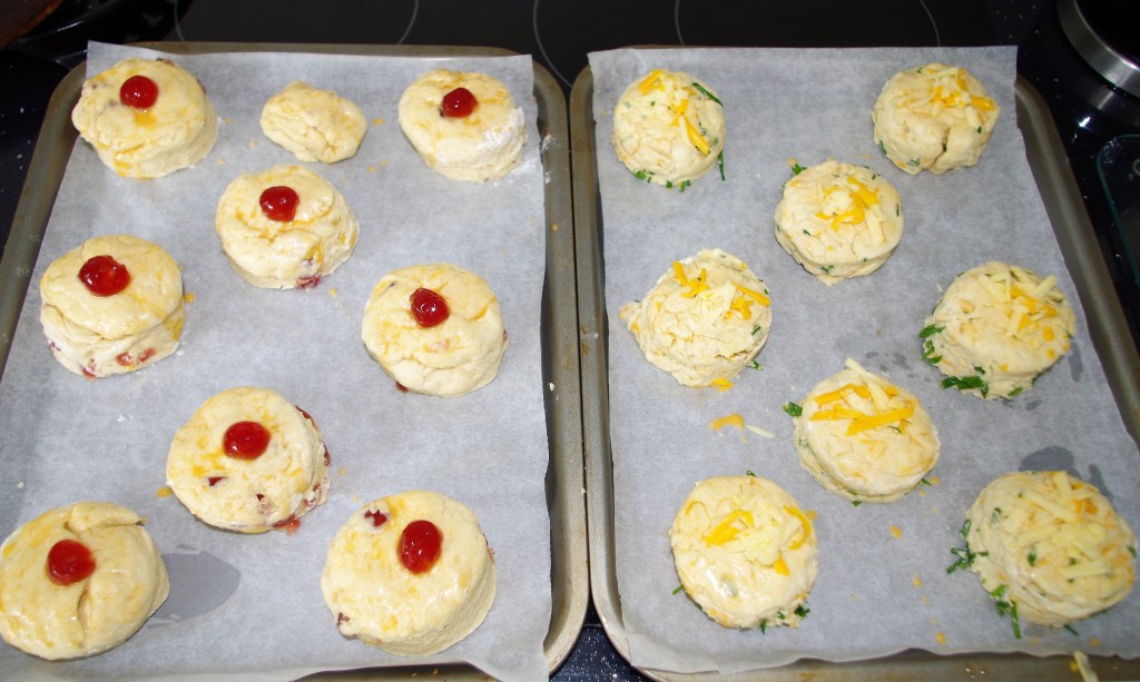 10. Place both trays in the oven and bake for 16 – 20 minutes or until the scones are a golden brown colour.