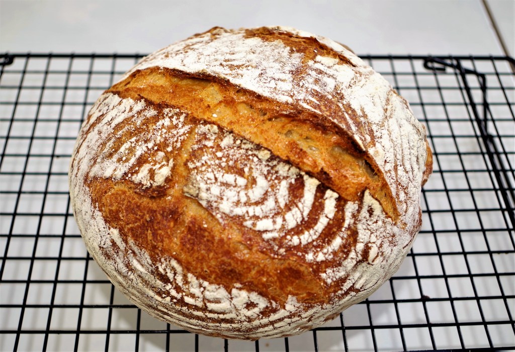 Time: 30 min. initial “hands-on”, 60 – 90 min. first prove, 15 – 20 min. second “hands on”, 30 – 45 min. second prove, 30 – 40 min. baking. NB Proving times will vary according to the temperature in your kitchen. With a stand mixer the “hands on” time will be reduced a little.