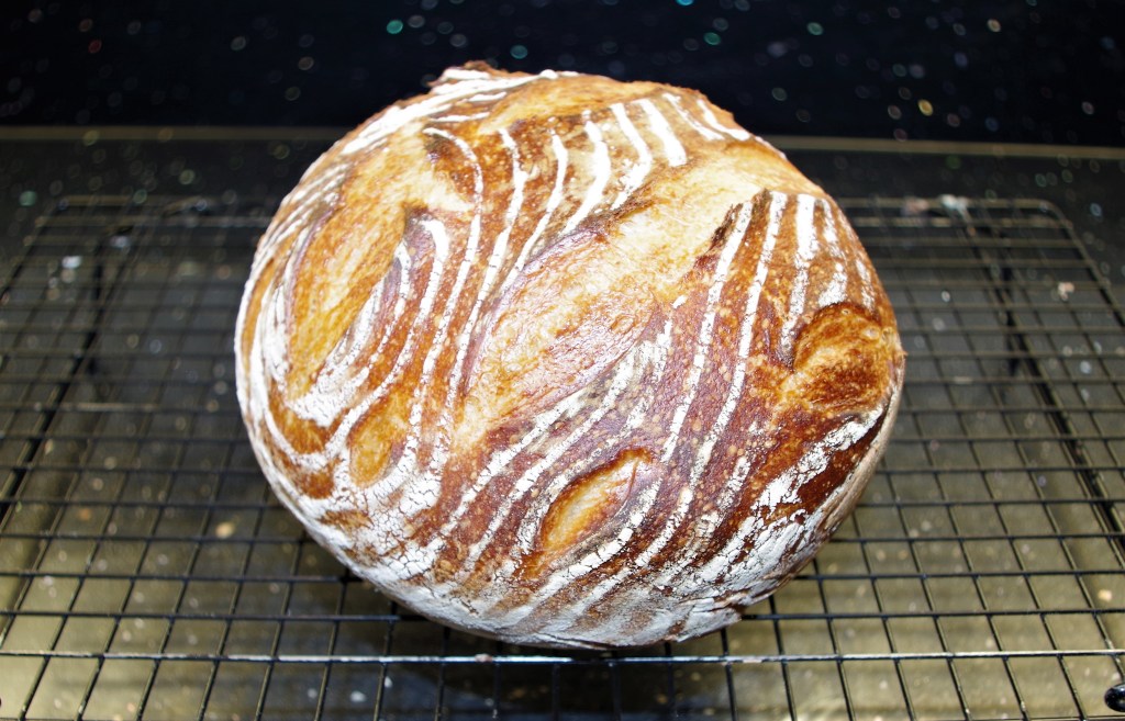 Need: A large baking sheet or tin + parchment. A stand mixer is useful, but not essential. Likewise, a baking stone is good, but also not essential.