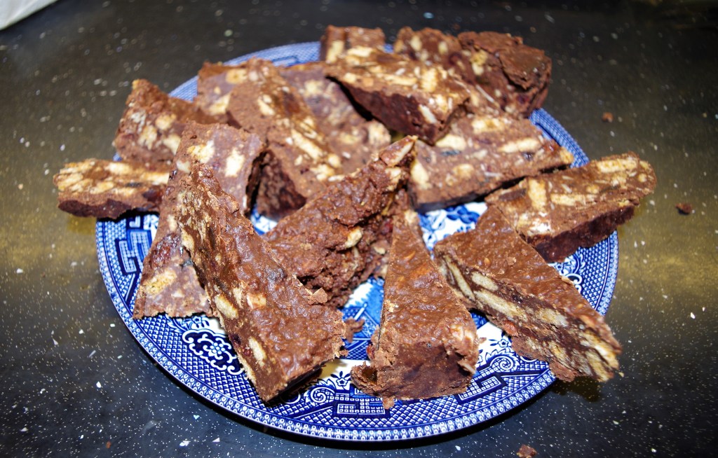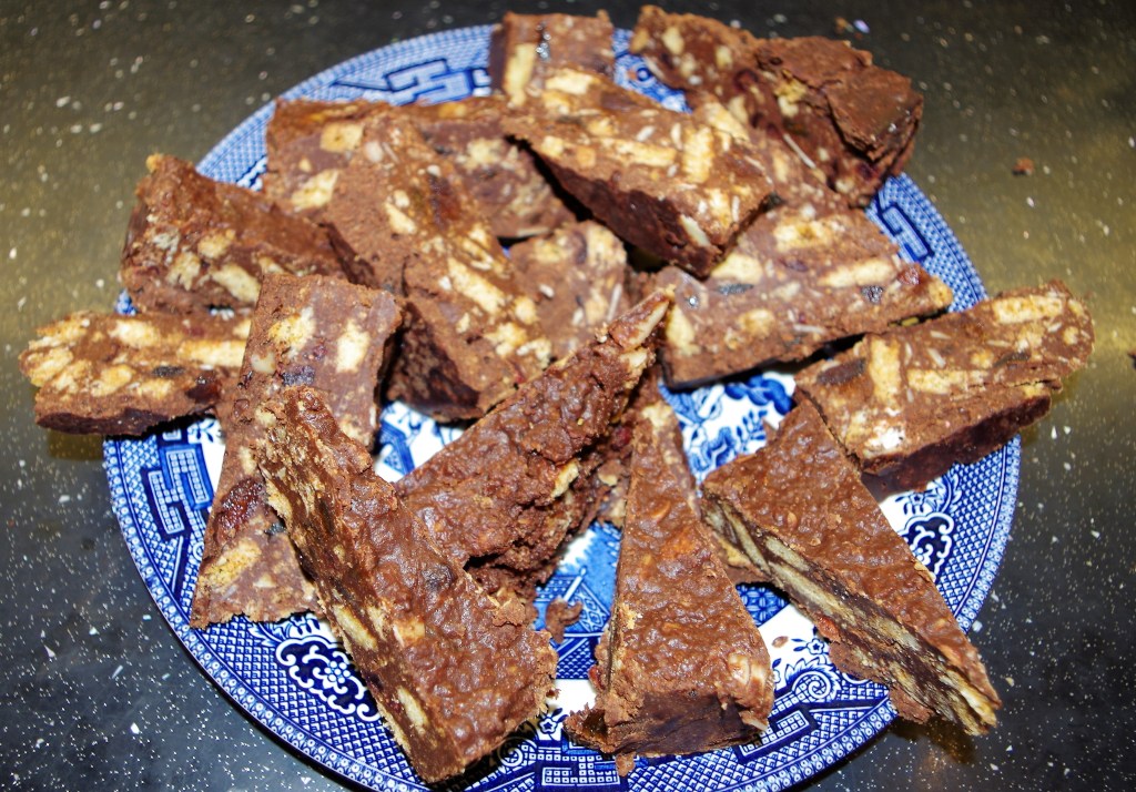 - Around 500g (1lb 2oz) biscuits, broken into small pieces (I used a mixture of three: Digestives, Hobnobs and Oreos.)