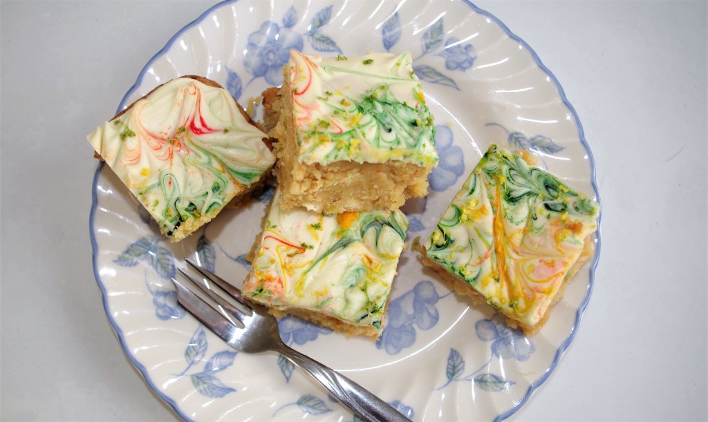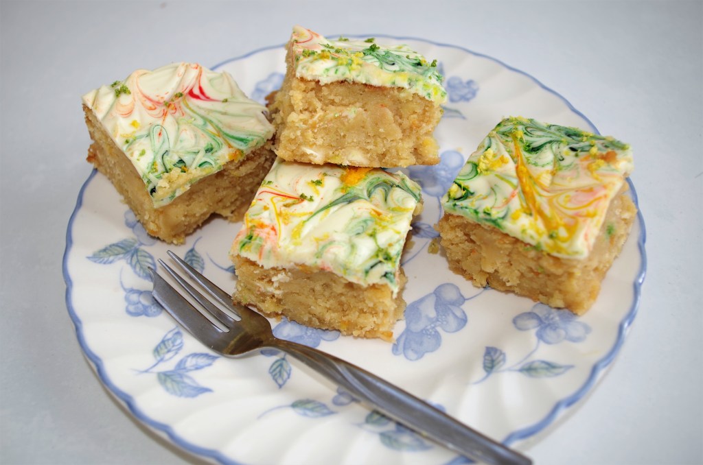 These beautiful blondies marry the zingy tang of three different citrus fruits with the fudgy richness of white chocolate and caramel. What a combination.