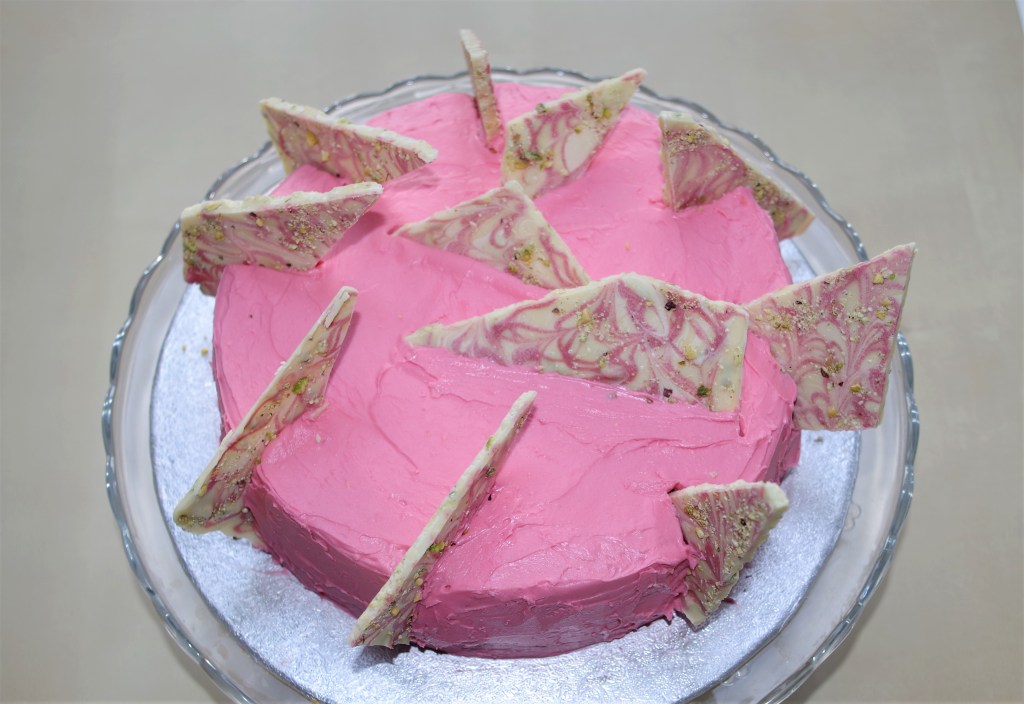 - Decorate with the remaining Turkish Delight pieces or cut up the Turkish Delight chocolate bar and use that. Or scatter with the chopped pistachios. Or leave the top plain – your choice. FOR THE SHARDS