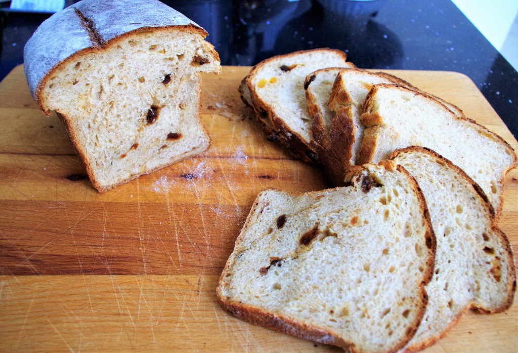 I’ve really got into sweet fruity loaves recently – great for breakfast with a dollop of mascarpone or marmalade or both. Anyway, here’s another one that’s slightly different, mainly due to the alcoholic content. Not a massive amount, but enough to know it’s there. (You’ll probably still be OK to drive after a couple of slices.)