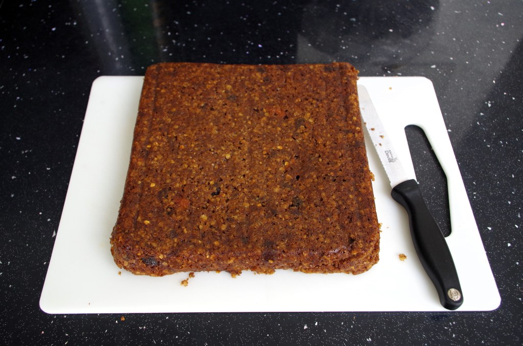 6. Allow the parkin to cool then either cut it in the tin or tip it out before cutting. You may need to invert the slab onto a suitable surface first.