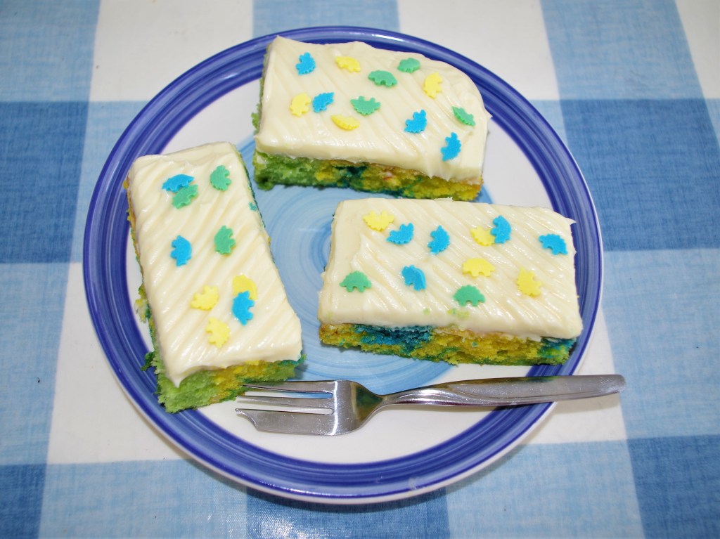 - green, yellow and blue food colours (I like the Coloursplash range)
