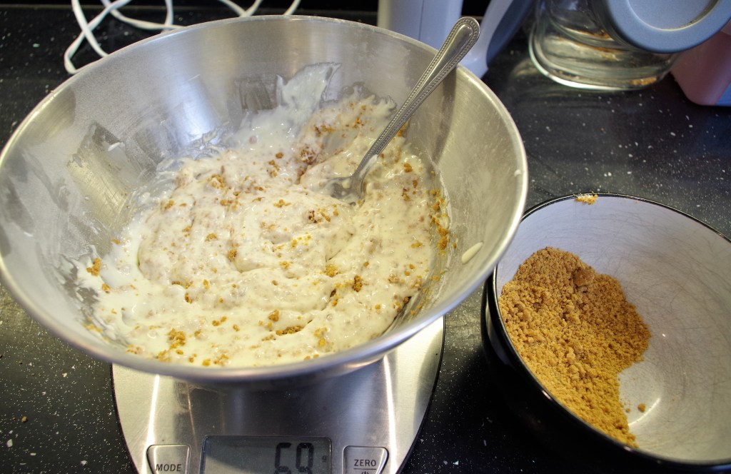 - Approx.100g/3½oz ginger biscuits, whizzed to fine crumbs*