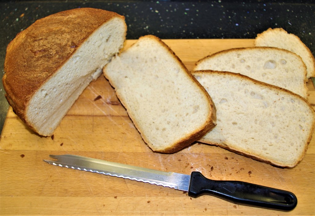 Crisp and crunchy on the outside, soft and fluffy on the inside; this is a great loaf. It’s white, it’s tasty and it’s perfect for sandwiches, toast or just eating with butter. What’s more, it keeps well even though it has no chemicals or “longevity additives”. (Perish the thought – pun intended)