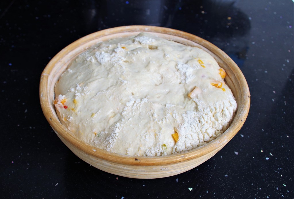 4. Flour the dough well and place in a floured banneton (or bowl). Cover and leave to rise for the second prove: 3 – 4 hours depending on room temperature.