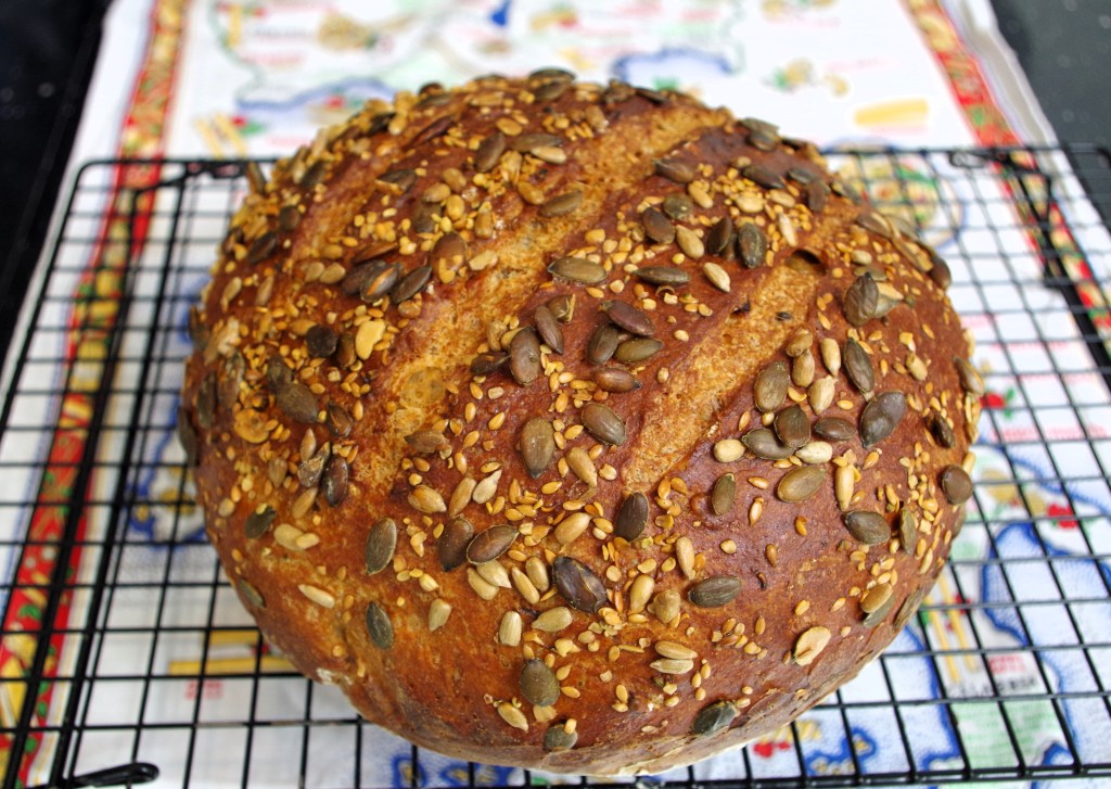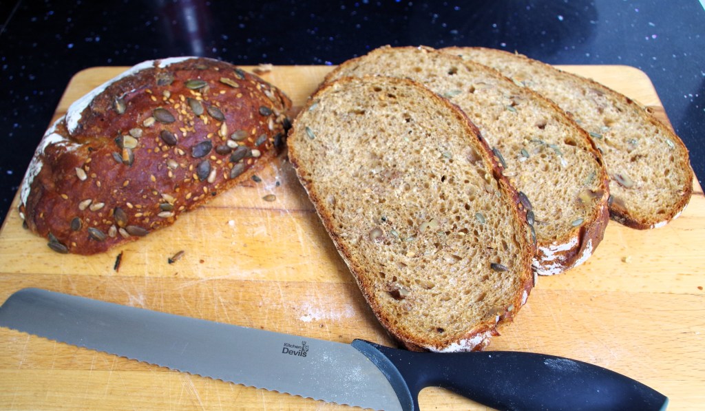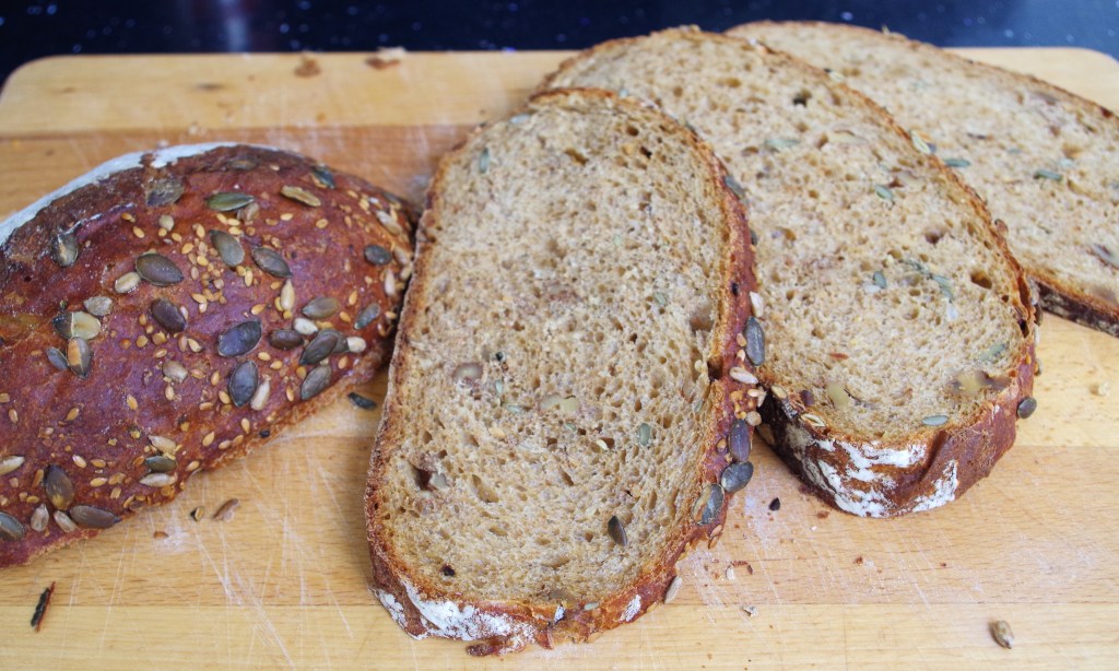 Here’s a loaf that’s rich and strong, but it still has a soft flavourful crumb. The seeds and walnuts enhance the texture.