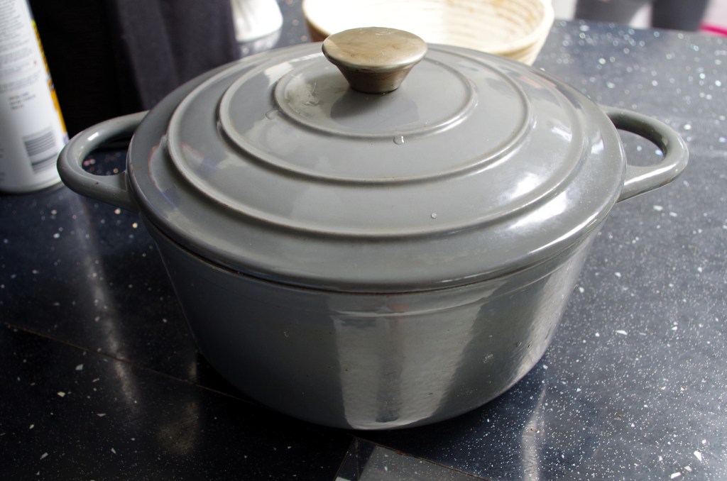 I often bake bread in a Dutch oven and use the “cold start” method. I recommend this; it gives excellent results. If you don’t have a Dutch oven then a lidded casserole dish will give reasonable results. I also use a banneton for the second prove, but if you don’t have one then use a medium sized bowl.